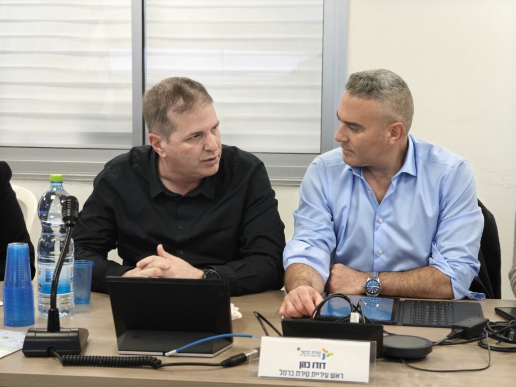 ראש העיר טירת כרמל, דודו כהן בפגישה עם שר החינוך, יואב קיש, צילום: דוברות עיריית טירת כרמל